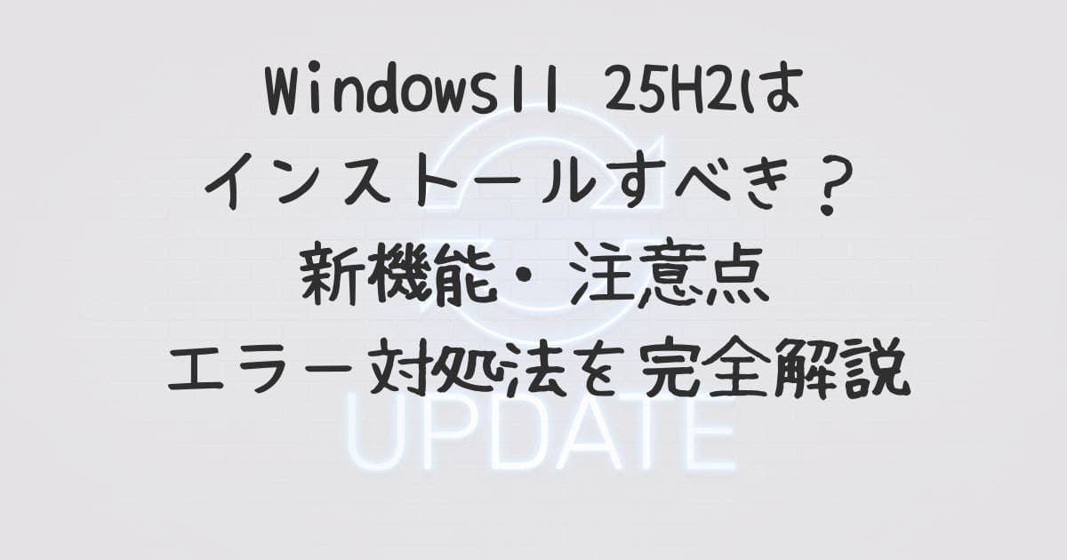 Windows11 25H2はインストールすべき?新機能・注意点・エラー対処法を完全解説