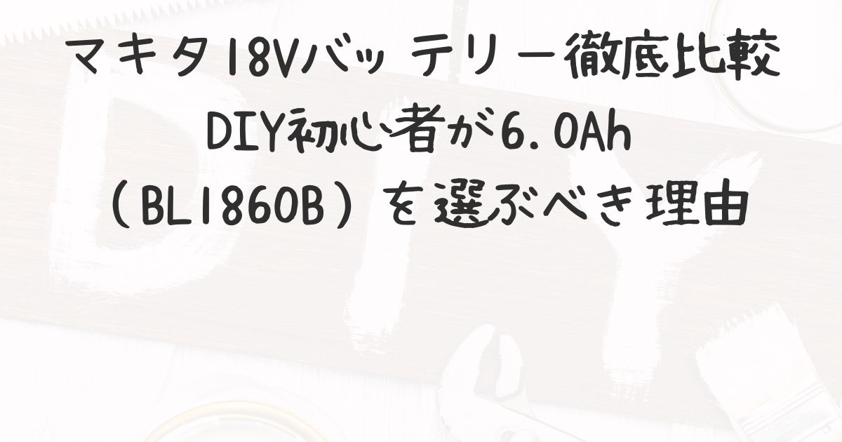 この記事では、DIY初心者でも失敗しないバッテリー選びとして、マキタ純正のBL1860B(6.0Ah)を中心に、他モデルとの違いや使い勝手を徹底比較します。