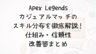 ゲーム Apex Legends|カジュアルマッチのスキル分布を徹底解説!仕組み・信頼性・改善策まとめ Apex Legendsのカジュアルマッチに導入された「スキル分布表示機能」。 ロビーで全プレイヤーの実力分布を確認できる便利な仕組みですが、本当に正確なのか、どこまで役立つのか気になっている方も多いのではないでしょうか。 本記事では、スキ... ゲーム