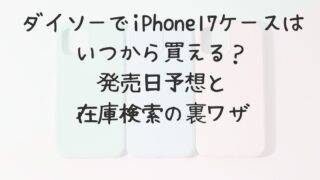 生活 ダイソーでiPhone17ケースはいつから買える?発売日予想と在庫検索の裏ワザ iPhone17を購入したら、すぐに欲しくなるのがケースや保護フィルムですよね。 でも2025年9月時点では、まだダイソーでiPhone17専用のアクセサリは販売されていません。 「じゃあいつ買えるの?」「通販とどっちが早いの?」と疑問を持... 生活