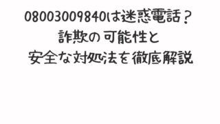 生活 08003009840は迷惑電話?詐欺の可能性と安全な対処法を徹底解説 スマホに「08003009840」から突然着信があると、不安になりますよね。 「詐欺の電話?」「無視しても大丈夫?」と迷ってしまう方も多いはずです。 実際、この番号は営業電話や勧誘目的の可能性が高く、中には不自然な説明や強引な勧誘を受けたと... 生活